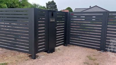 Diese Art der Lösung wird insbesondere für Unternehmen und private Bereiche mit größeren Flächen empfohlen, die häufig durch einen modernen Zaun an der Vorderseite des Gebäudes ergänzt werden.